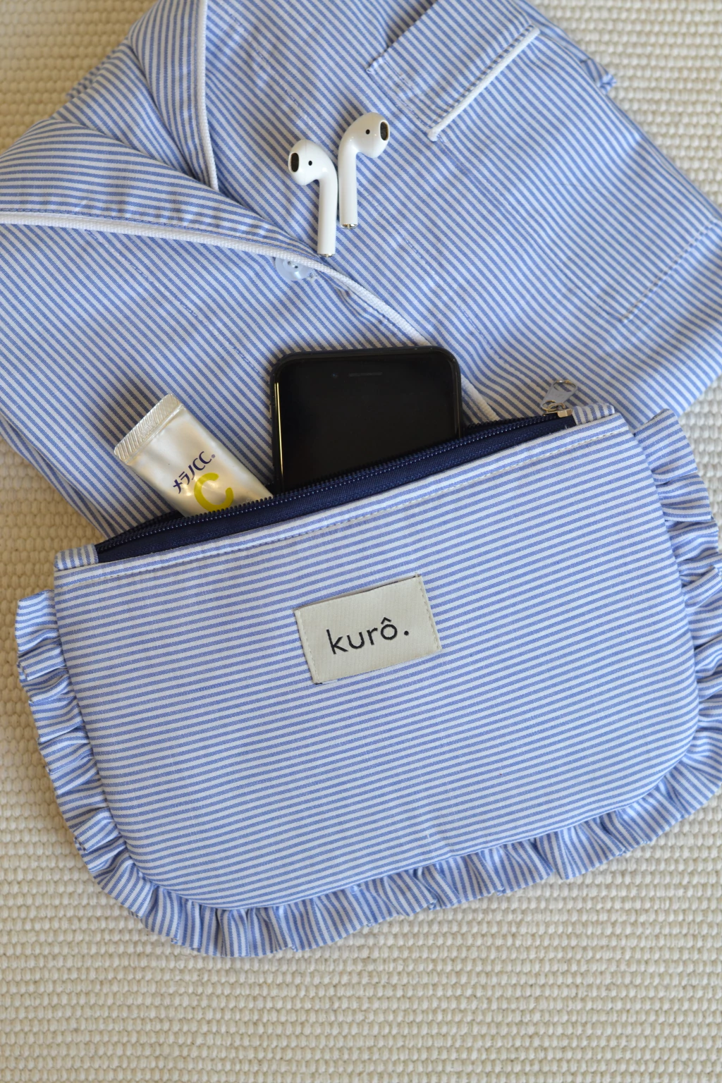 Para completar o seu look e te deixar mais estilosa, criamos a necessaire slim de babados com a mesma estampa dos nossos pijamas, ideal pra mulher que aprecia os detalhes. Essa peça é produzida por talentosas artesãs da nossa cidade, com acabamento todo em babado ao seu entorno que traz um leve romantismo. Ela é ideal para levar seus itens essenciais dentro bolsa de forma organizada, pois ocupa pouco espaço.