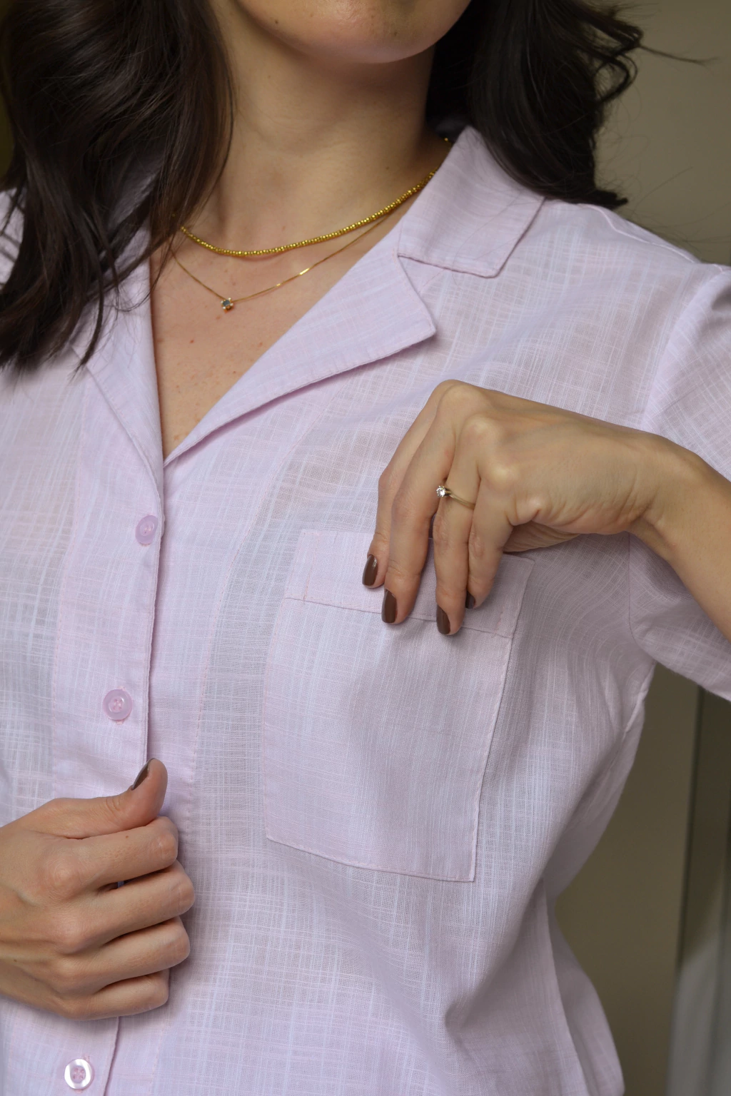 Com um tom de rosa super clássico e combinado com o tecido que remete ao linho, o Lara Rosé é o pijama ideal para as mulheres que gostam de peças mais leves e delicadas. Com uma modelagem versátil, o pijama Lara Rosé traz a possibilidade de criação de looks para além da cama. Uma regatinha branca por baixo da camisa aberta, ou até mesmo o shorts com uma camisa branca criam um look super cool!